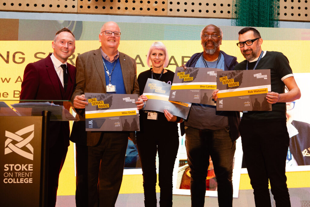 At Stoke-on-Trent College, we value the ongoing loyalty and commitment our team members have to changing the lives of our learners. We recognise the dedication and commitment of our long-serving team members at the College’s annual Staff Accolades event.